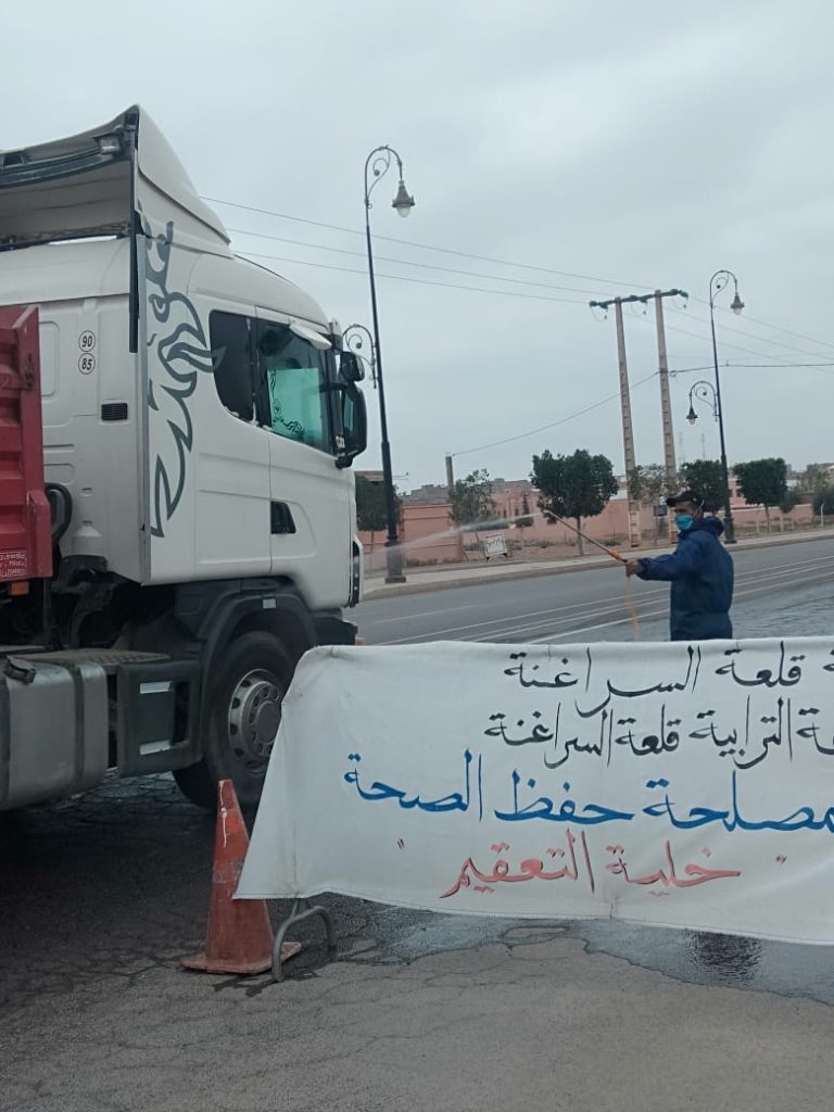 استمرار تعقيم مداخل المدينة من جهتي بني ملال و مراكش.