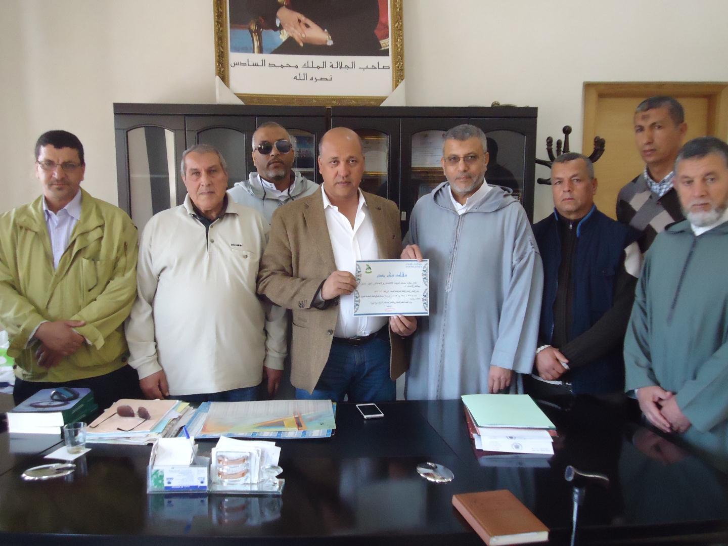 تقدم اعضاء جمعية سكان المركب الاقتصادي والاجتماعي بقلعة السراغنة الى السيد رئيس جماعة قلعة السراغنة السيد نورالدين ايت الحاج بشهادة تقدير و شكر عن المجهودات التي قام بها شخصيا و مجهودات المجلس الجماعي قلعة السراغنة من اجل ترصيف و تهيئة الطرق بالمركب ، و بالمناسبة قدمت الجمعية عدة اقتراحات تهم الرفع من جمالية الحي و تنظيمه حثى يكون حيا نمودجيا في المدينة .