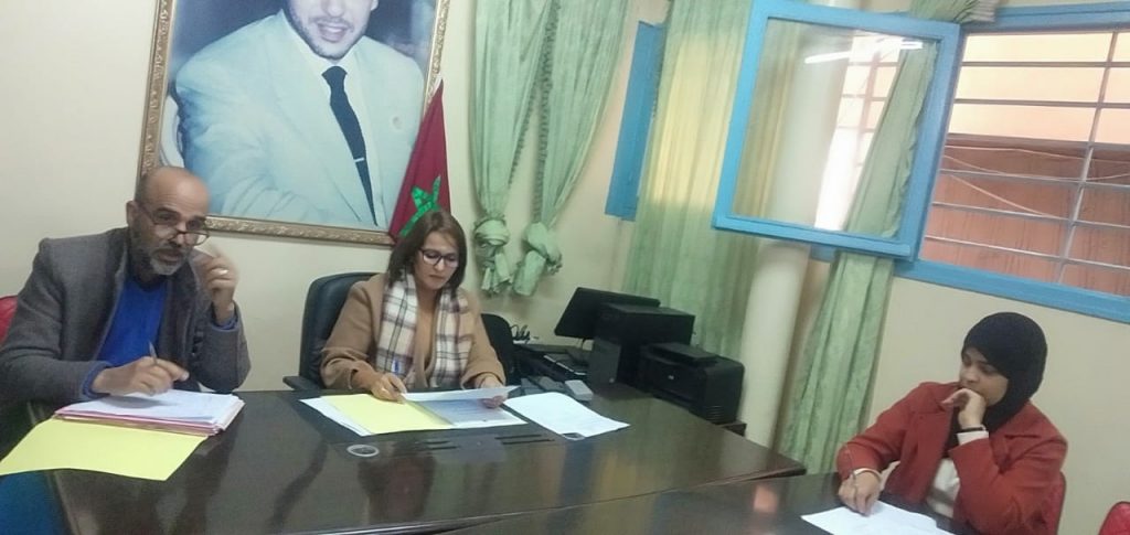 تطبيقا لمقتضيات المادة 28 من القانون التنظيمي 113.14 المتعلق بالجماعات عقدت اللجنة المكلفة بالتنمية الاجتماعية و الثقافية و الرياضية اجتماعا لها ، تراسته السيدة زهرة افيس رئيسة اللجنة و حضره السيد عبد الرحيم عياد المفوض في القطاع ، و حضره السادة اعضاء اللجنة و السادة الموظفين العاملين بالمصلحة المعنية ، يومه الخميس 17 مارس 2022 انطلاقا من الساعة العاشرة و النصف صباحا بمقر الجماعة ، وقد تضمن جدول اعمال الاجتماع النقط التالية :